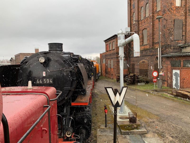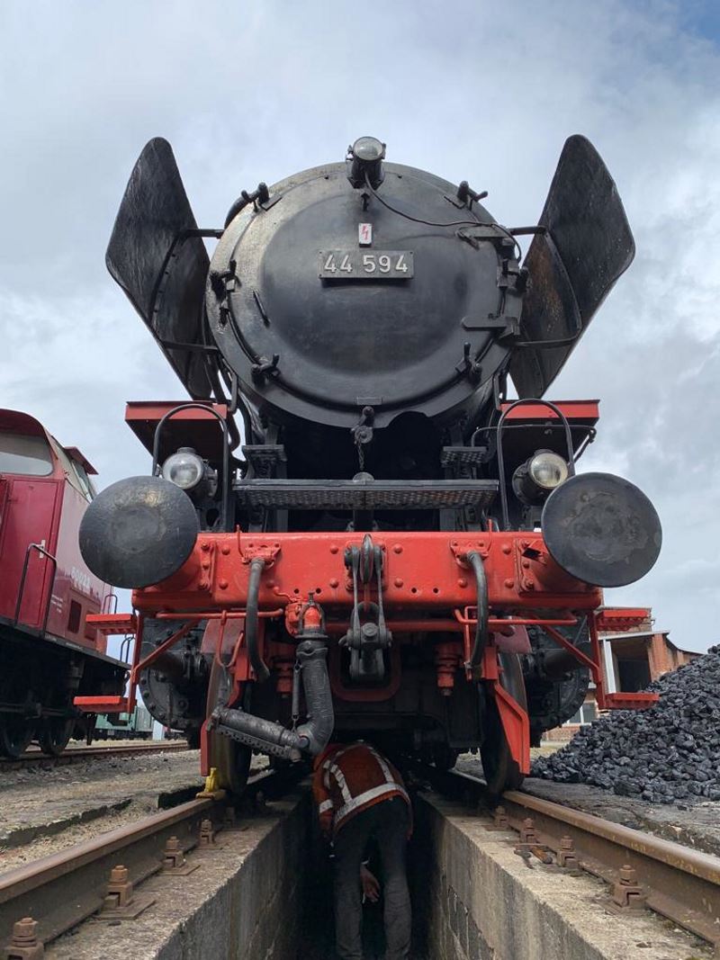 Der heutige Tag wurde der Fahrzeugpflege gewidmet. Gerade die Exponate, die derzeit draußen stehen müssen, brauchen regelmäßige Pflege. So wurden heute die Achslager unserer Dampflok 44 und der Dieselloks V60 und V22 abgeölt. Da die Exponate ziemlich schwer sind, haben wir die Diesellok 60022 in Betrieb genommen, mit der das Rangieren problemlos durchgeführt werden konnte.