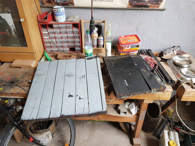 Endlich läuft auch wieder der VW-Motor des Breuer-Traktors, den ein anderer Kollege in Heimarbeit zum Leben erweckt hat. In nächster Zeit werden wird das Verschubgerät nun wieder zusammenbauen können.