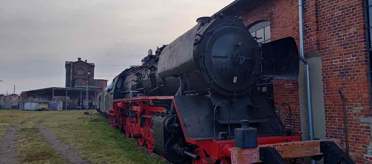 Nach dem Mittagessen war zum Glück der Schnee geschmolzen und es gab noch einige größere Rangieraufgaben zu bewältigen. So wurde die 50 3700 vorübergehend als Blickfang hinter dem Lokschuppen platziert und grüßt nun alle vorbeifahrenden Bahnreisenden. 50 3685, die während der letzten Monate draußen verbracht hatte, durfte dafür wieder in den Lokschuppen