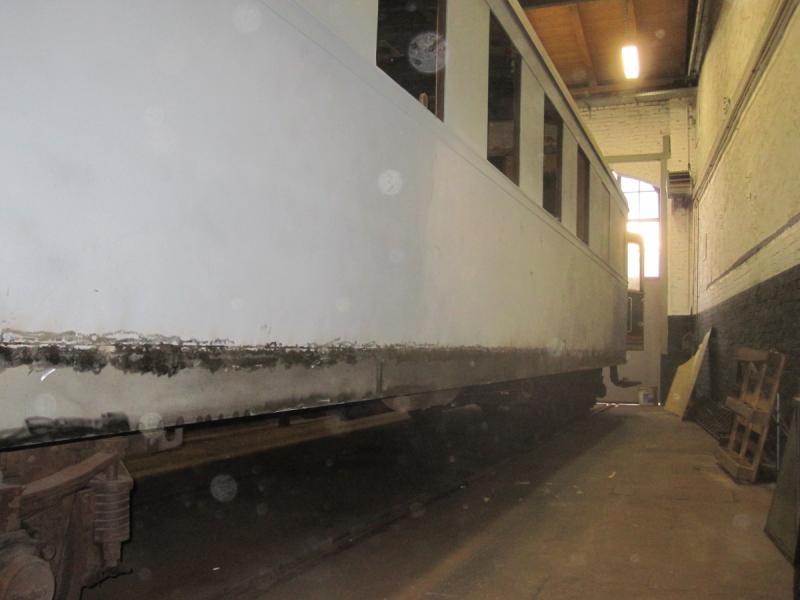 Da die Wagen des K-Zuges in Salzwedel leider meist der Witterung ausgesetzt sind, ist nach und nach eine Sanierung notwendig. Begonnen haben wir mit dem Maschinenwagen, der ursprünglich am 20.12.1976 in Dienst gestellt wurde. Äußerlich unterscheidet er sich kaum von den damals in der DDR üblichen Reisezugwagen der Gattung Bghw. Der Wagenkasten stammt auch vom gleichen Hersteller, dem Reichsbahnausbesserungswerk Halberstadt.